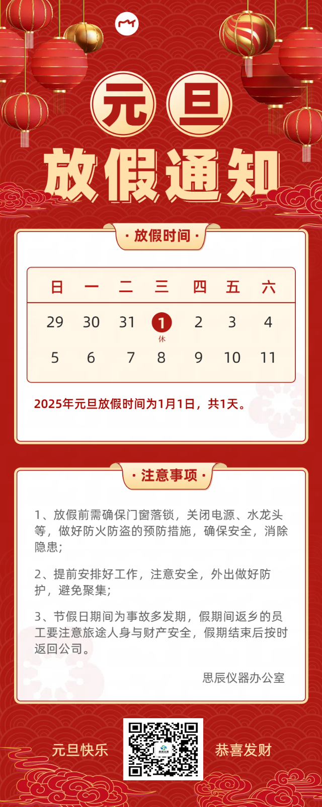 根據(jù)國務(wù)院最新通知,2025年思辰儀器元旦放假工作事宜!