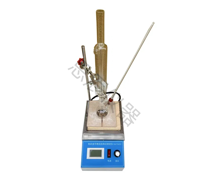 本儀器是根據(jù)石化行業(yè)標準SH/T0430《剎車液平衡回流沸點測定法》而設(shè)計生產(chǎn)的,由電子調(diào)壓器、圓形大功率電爐加熱器、沸點燒瓶及冷凝管等組成.儀器的方法為,取一定量的試樣在燒瓶內(nèi)與大氣壓平衡,并在一定回流速度條件下沸騰,用矯正到標準大氣壓的溫度作為平衡回流的沸點。該儀器適用于測定剎車液及其基礎(chǔ)液組分的平衡回流沸點。