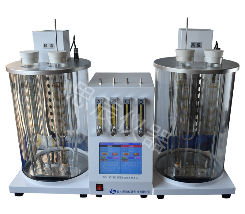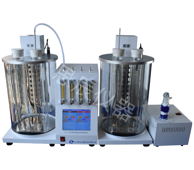 本儀器是根據(jù)標(biāo)準(zhǔn)GB/T12579《潤滑油泡沫特性測定法》及標(biāo)準(zhǔn)ASTM D892研發(fā)設(shè)計制造,采用數(shù)字式 PID 溫控器控制浴槽溫度,通過電機(jī)攪拌使浴槽恒溫均勻(高溫槽 93.5℃,或低溫槽 24℃,控溫精度±0.1℃)。使用空氣泵、轉(zhuǎn)子流量計、氣體擴(kuò)散頭、計時器等,向裝有試樣的量筒內(nèi)、定時定量地通入空氣,測定試樣產(chǎn)生氣泡的體積。儀器外形美觀、使用方便。