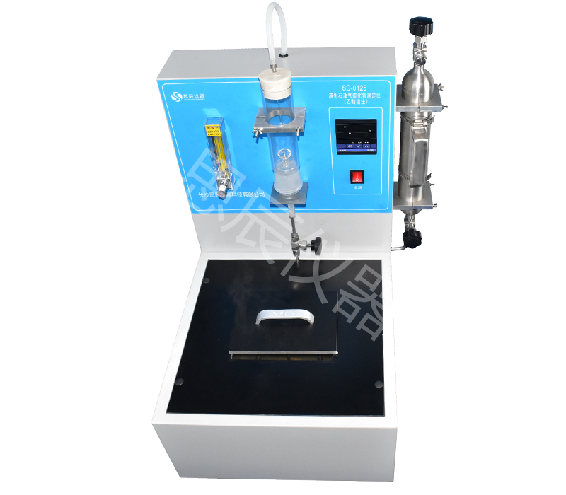 本儀器參照SH/T0125標準設計制造的。規(guī)定了氣化的液化石油氣在規(guī)定條件下通過濕潤的乙酸鉛試紙條,以試紙條是否變色來確定硫化氫有有或無,適用于液化石油氣中的硫化氫有或無的檢測,檢測硫化氫的下限為4mg/m3。如果甲基硫醇存在,則在乙酸鉛試條上產(chǎn)生短暫的黃色污斑,但不到5min便完全消失,液化石油氣中的其他硫化物不干擾本試驗。