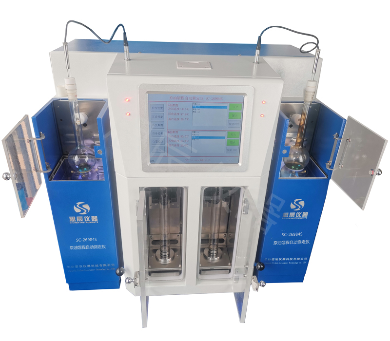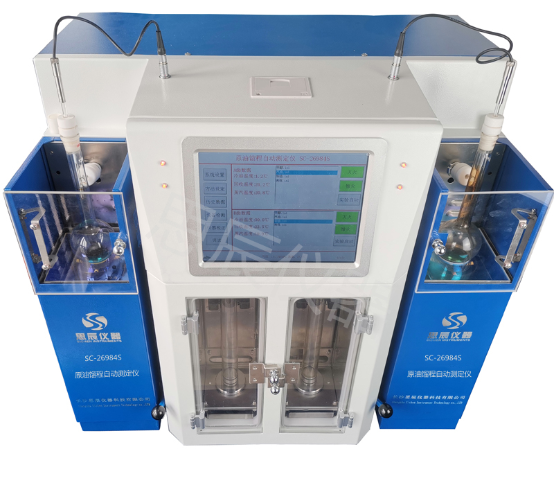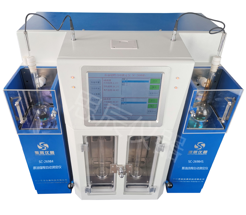 本儀器是我公司新研發(fā)的第三代產(chǎn)品,根據(jù)國家標準GB/26984-2011《原油餾程的測定》標準試驗方法設計制造的。是集機械、光學和電子技術(shù)于一體,采用進口傳感器,量筒回收體積讀數(shù)采用進口數(shù)控精密光學跟蹤檢測系統(tǒng)。自動完成餾程全過程實驗,廣泛適用于水含量質(zhì)量分數(shù)不大于0.2%的原油的測定。對于水含量質(zhì)量分數(shù)大于0.2%的原油需進行脫水處理后也適應??赏瑫r進行兩組試樣的測試實驗,從而大大得提高了工作效率.